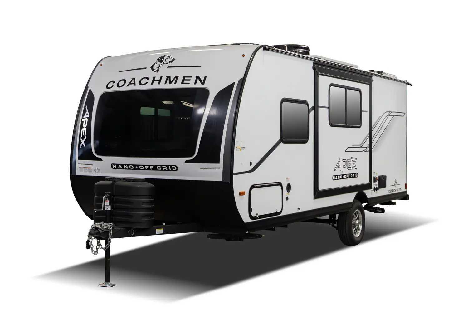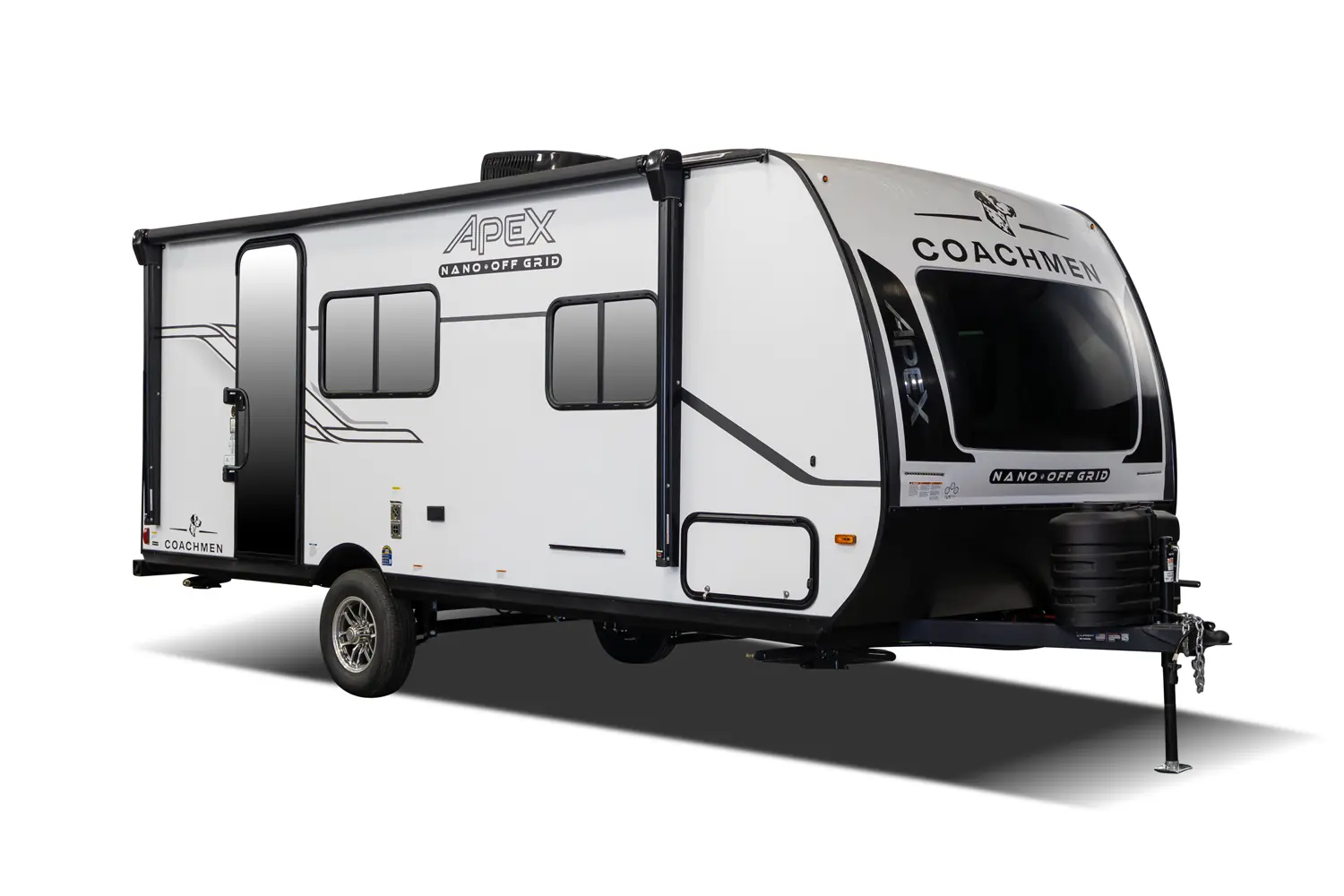 Apex Nano Travel Trailers are the perfect lightweight RV for adventurers seeking durability, efficiency, and comfort on the road. Engineered specifically for easy towing with today’s half-ton trucks, minivans, and SUVs, every model in the Apex Nano lineup features an ultra-lightweight design, with each unit weighing under 4,500 pounds. These compact travel trailers offer the freedom to explore without sacrificing the quality and innovation RV enthusiasts expect from a leading RV manufacturer. With smart floorplans, off-grid capabilities, and top-tier construction, Apex Nano is built for families, couples, and solo travelers looking for maximum versatility in a small RV footprint.